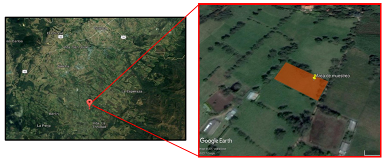The study area is located at La Trinidad village in the municipality of Guasca, Cundinamarca: a total area of 2,292 m2 [Figure 1]. Based on the dimensions selected and the underground water reservoir located at the center of the north side of the study area, a slope of 9.47% was measured, which recharges from rainwater, a channel of approximately 30 cm. wide and 20 m. long. This channel diagonally crosses the study area ( Figure 2].