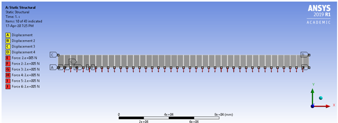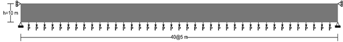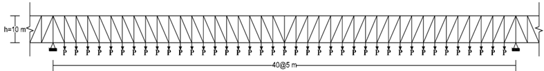 This section shows the validation results of the optimization process presented in Section 4. Its performance is assessed by the solution of a large-scale structure. This structure is a continuous bridge truss (see Figure 5], studied by [50].