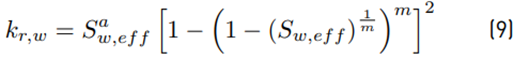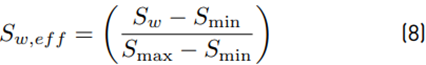 From the hydraulic properties of unsaturated soils, the effective degree of saturation of the w phase is given by Equation (8):