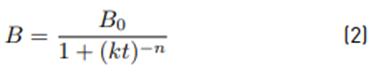 Where: Xi is the volatile solid fraction contributed by the ith substrate in the mixture; Bi corresponds to the methane yield of the ith substrate at a given time and according to the adjusted kinetic model (1) or (2).