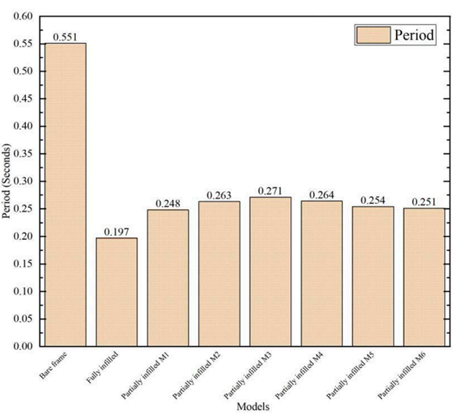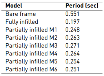 Secondly, after infilling the frames by 50 percent randomly, we noticed through the results obtained that the model M1, recorded the lowest value for the period, followed by M6, then M5, then M2, then M4 and finally M3, but with relatively close values.