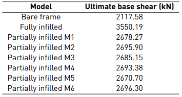By comparing the partially infilled models, we can say that the values are relatively close and do not constitute a significant influence on the seismic behavior of this type of reinforced concrete frame.