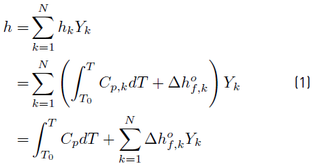 For a mixture of N reacting species Yk, the sensible + chemical enthalpy h (Equation (1)] is defined by [34]=: