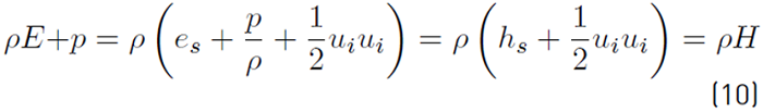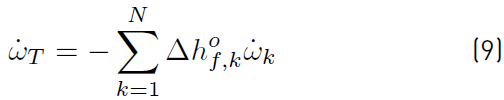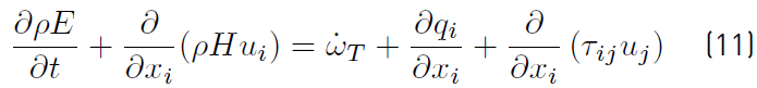 is the total rate of heat release due to chemical activity (Equation (9)] of all species. If the pressure p is added to ρE can be obtained Equation (10): [34]
