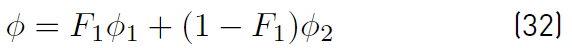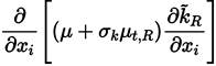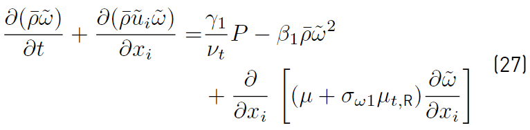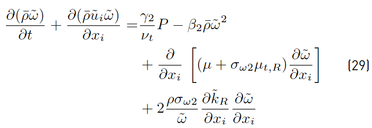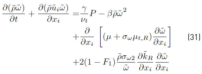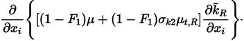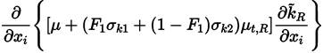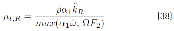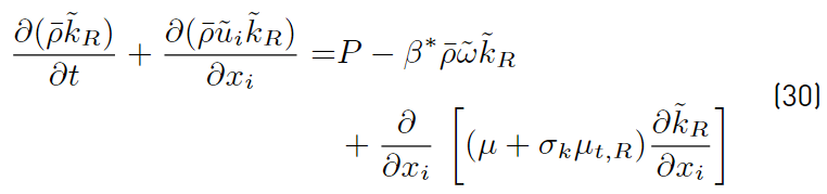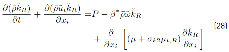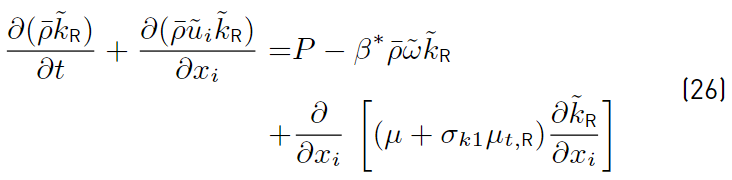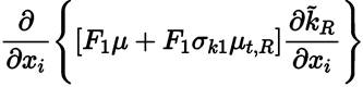 Multiplying each term of Equation. (26) by a sort of blending function F1(later to be defined), and each term of Equation (28) by (1 − F1) and after adding both, the equation for the energy kR of the turbulence is obtained [41]: