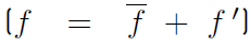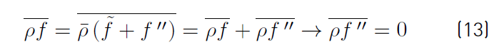 Therefore, any quantity f splits into mean and fluctuating components as . Note that time averages of double primed fluctuating quantities are not equal to zero. Instead, the time average of the double primed fluctuation multiplied by the density
