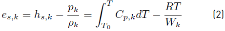 The sensible energy es,k (Equation (2)] and sensible enthalpy hs,k of any species k, are related by [34]