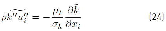 The third term (Equation (24)] represents turbulent transport of the turbulent kinetic energy, and the gradient diffusion approximation is commonly used to model this term [32],