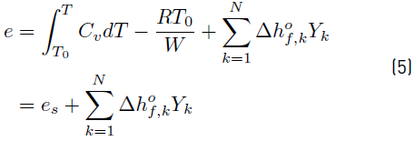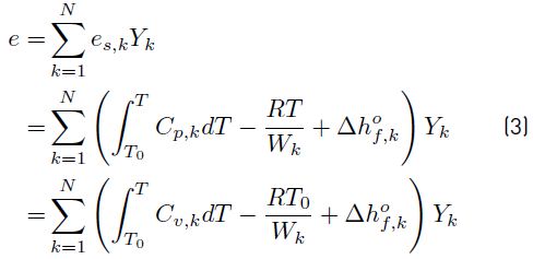 and then, the sensible + chemical energy e for the mixture of N reacting species becomes [34]