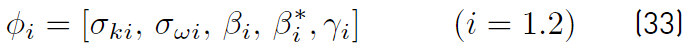 The last two equations (Equations (30) and (31)] are those of Menter model. The closing constant are obtained applying the relation given by Equations (32) [41].