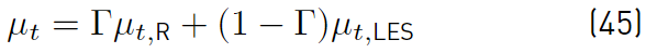 The eddy viscosity µt (Equation (45)] is obtained by blending the µt,R and µt,LES in the following manner