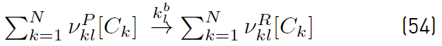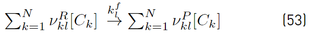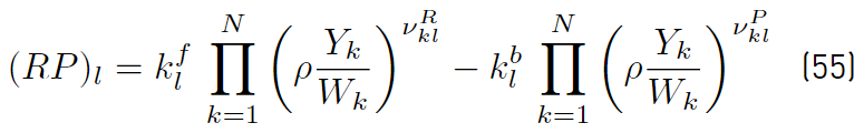 If forward rates and the equilibrium constants are used to determine backward rates [32,34], the rate production of species k due to reaction l, is written in the form shown in Equation (56)
