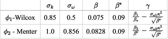 Constants of the set ϕ1 −Wilcox and of the set ϕ2 −Menter, are presented in Table 1.
