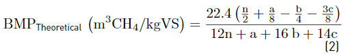 In order to promote the implementation of AD, it is necessary to conduct research that reveals the technology’s operation and applicability with the available local organic waste. For its practicality and economy, the Biochemical Methane Potential (BMP) test is one of the most used when the feasibility of AD is to be evaluated. The test may also be applied to determine the best substrates or co-substrates in terms of maximum methane potential. The production of methane influences both the design and the economics of a biogas plant[9].