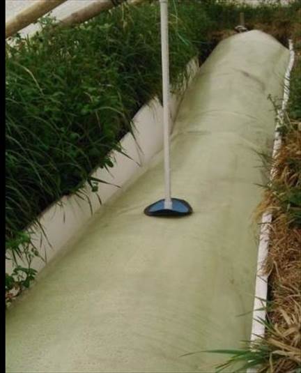 Each biodigester had a total and effective volume of 8 and 6 m3, respectively. Given the low temperature on site (10 °C on average), bioclimatic elements were implemented in order to increase the internal temperature of the biodigesters; thus, an expanded polystyrene insulation of 3 cm of thickness was installed in biodigester B1 and an insulation of bamboo in biodigester B2. In the case of the bamboo insulation, a shade screen was also installed to protect the system. Additionally, a greenhouse plastic covering was installed to protect the two biodigesters and to increase their internal temperature. Each biodigester was loaded up to 35% of effective volume, including 5% of inoculum in terms of VS; this inoculum was the same used on the lab scale. The daily feeding was 20 kg of manure (CM: GPM of 7:3 in weight) and 60 liters of DW, corresponding to an OLR of 0.4 g SV/L/day.