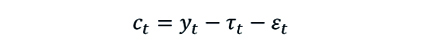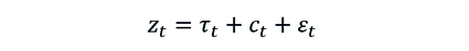 donde τt es el componente tendencial, ct el componente cíclico estacionario y εt el componente irregular también estacionario, para t = 1, 2, …, T. Brevemente, el filtro CF, relaciona los distintos componentes de la serie de tiempo definidos en (1) con diferentes frecuencias, lo que le permite asignar los movimientos de baja frecuencia a la tendencia y los de alta frecuencia al término de perturbación, aislando los movimientos cíclicos en una banda con un rango específico de duración.[9] Por lo tanto, permite obtener un componente cíclico más suave definido como: