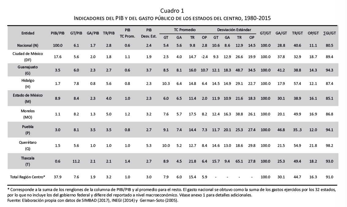 Economic cycles and public spending: an analysis of structural change for the central region of Mexico, 1980-2015