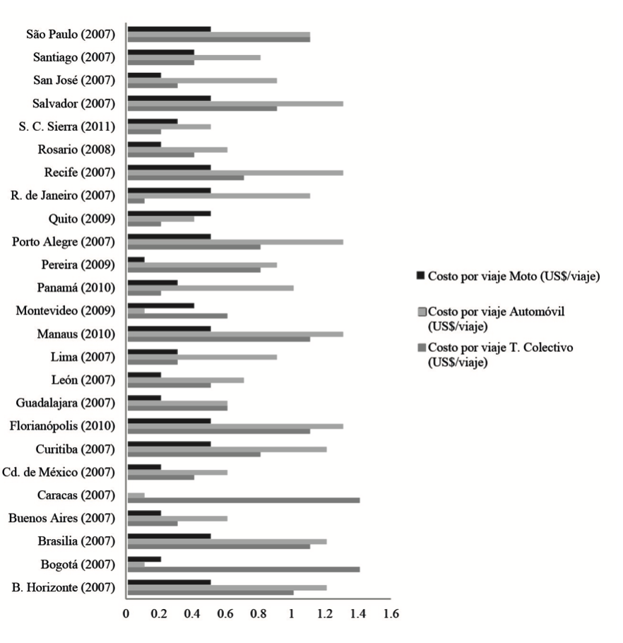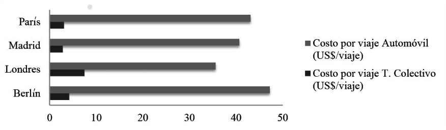 En las ciudades de América Latina (tabla 2) se detecta, en general, que el costo de producción por viaje en automóvil es más alto que en transporte colectivo, generando un incentivo al uso de este último. Sin embargo, en muchos casos los costos de ambos modos son similares. En las ciudades de Europa (tabla 3) la diferencia de costos es significativamente mayor, favoreciendo de manera más contundente el uso de modos colectivos.
