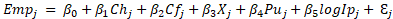 , el término de error estocástico. La variable dependiente, la tasa de emprendimiento, ha sido considerada en dos grupos a partir del lapso de constitución de las empresas: de cero a cinco años (2006-2010) y de cero a diez años (2001-2010). En la práctica, existen otros factores distintos al capital humano que inciden en el nacimiento de nuevas empresas; con el fin de capturar esos efectos y verificar si los resultados son estables, fueron incluidas cuatro variables de control; con ellas, el modelo (1) se convierte en uno más amplio, como lo formaliza la siguiente ecuación: