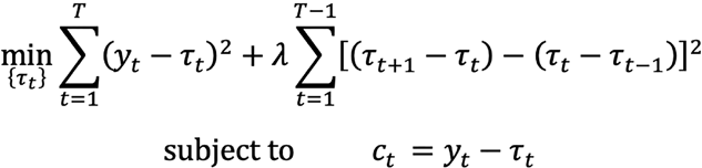 (2)being yt the original series to be filtered, τt the trend component and ct the cyclical component of yt.
