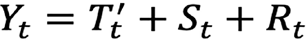 We assume that the data, the trend component, the seasonal component and the remainder component are denoted by Yt,T't,St and Rt respectively, and that, for t=1,…,n, the following relation holds: