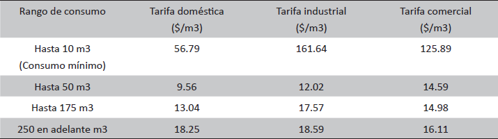 Es importante mencionar que existe una clara inclinación a favorecer el uso comercial e industrial del agua (véase cuadro 1), al disminuir su precio en tanto se incremente la intensidad del uso; caso contrario para el consumo doméstico donde el precio aumenta. Es decir, en el uso del recurso, se beneficia con menores precios a quienes utilizan el agua con mayor intensidad para actividades que les proporcionan beneficios económicos.