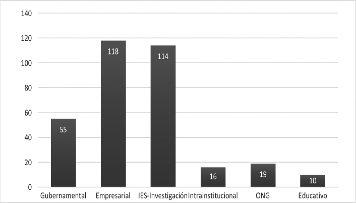 Por otro lado, respecto a los campos del conocimiento en los que se suscriben los convenios, en primer lugar se encuentran las ingenierías y tecnologías (García Galván et al., 2016). Sin embargo, no se realiza una intensa transferencia de tecnología; lo que sucede es que algunas unidades académicas (institutos de investigación y facultades) con planes de estudio de las ingenierías y las tecnologías son muy activas en la vinculación y firman muchos convenios con las empresas, sin implicar la colaboración mediada por el conocimiento.