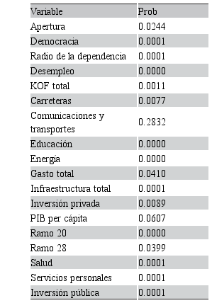 cálculos propios. Valor-P <.05* < .10** <.15***Los cambios en el grado de apertura del país han provocado diversos efectos en la distribución del gasto público, pese a que año con año el gasto ha aumentado e incluso hay ramas que han visto incrementos del 150%, en el sentido de la idoneidad de las funciones del gasto en el entorno globalizado el ciclo no se ha concluido. Existe una desconexión entre el incremento del gasto y su significancia cuando se habla de su utilidad en el camino de la globalización. Si retomamos el trilema de la globalización, donde democracia, mercado y Estado se complementan más que contraponerse para contribuir al crecimiento de las economías en la era de la globalización, la lógica que ha seguido México en su camino a la economía global, falta de —mínimamente con lo que podemos comprobar con este trabajo— uno de estos tres pilares. Desde que el país inició su proceso de apertura ha sido acompañado con políticas de austeridad en materia de inversión que han constreñido a tal grado la participación del Estado en la economía, que el proceso globalizador no se ha visto complementado ni siquiera en las ramas más básicas para su mayor beneficio.