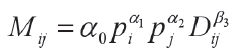 (3)Donde Yi y Yj son vectores de variables explicativas para describir diferentes aspectos de la región de origen (factores de empuje) y región destino (factores de atracción).