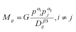 El modelo de gravedad para el análisis de la migración estipula que cada flujo de la migración (bruto) de origen i al destino j, denotado por Mij (i ≠ j; i, j = 1,…, n), es proporcional al tamaño de la población origen y destino denotados por Pi y Pj, respectivamente, e inversamente relacionada con la distancia entre los orígenes y destinos, denotado por Dij (Peeters, 2012).