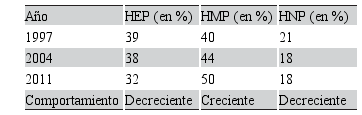 En primer lugar, la proporción de los hogares en pobreza extrema (HEP) y no pobres (HNP) disminuyeron y los hogares en pobreza moderada (HMP) aumentaron. Esto se debe al movimiento de los hogares tipo HEP y HNP hacia hogares tipo HMP (cuadro 6). Así pues, los resultados anteriores indican que la pobreza extrema disminuyó, lo cual es crucial para la política pública; sin embargo, los hogares tipo HNP también han decrecido. Si bien no se puede asegurar que sea debido a los subsidios y transferencias o a los ingresos remunerados nominales o reales, sin duda influye para ese resultado.