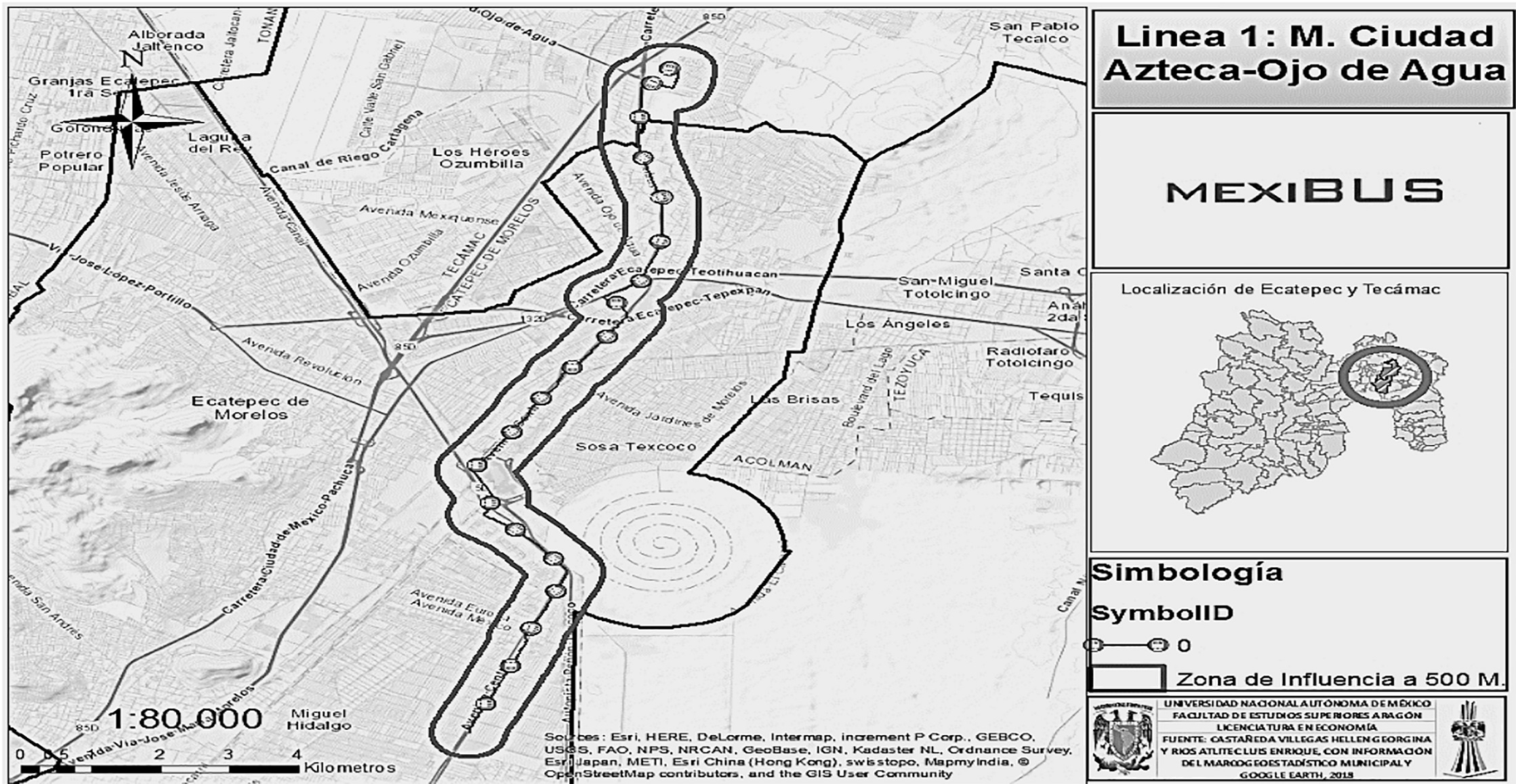 La importancia y la planeación de esta línea no sólo obedece a haber sido la primera de su tipo que fue puesta en operación en todo el Estado de México del sistema de transporte masivo Mexibús en octubre de 2010, sino a que se construyó en el municipio de Ecatepec, el de mayor población en la entidad, lo que permitió conectarse con Tecámac, región vecina que ha resentido los estragos del capital inmobiliario desde hace más de 30 años. Esta línea tiene una extensión de 17.5 km, integrada por 24 estaciones que corren por Ecatepec y Tecámac (Mapa 1).