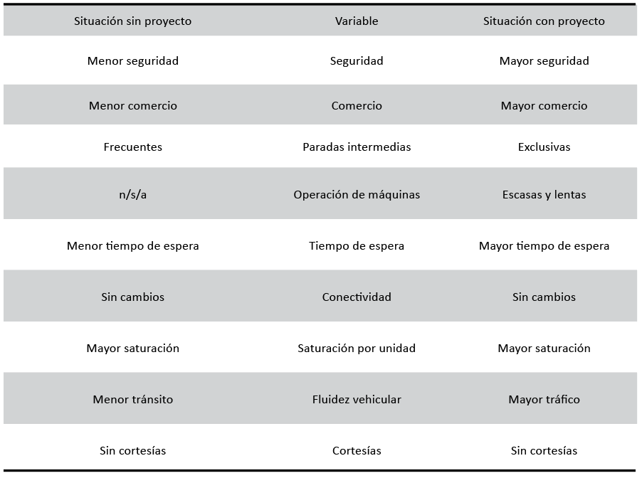 Al comparar el estudio de evaluación de la consultora con los resultados obtenidos mediante la aplicación de nuestras encuestas, detectamos algunas externalidades[3] que no fueron contempladas por el proyecto original, tal es el caso de la seguridad, evaluada positivamente por los usuarios que viajan en el Mexibús, y el comercio, que incrementó al exterior de las estaciones del Mexibús.
