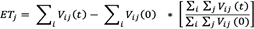 El efecto total ETj (Ecuación 5) es la suma algebraica de ambos efectos; compara lo que ocurrió en la región en el año t con lo que habría ocurrido si la región se hubiera comportado como el patrón de comparación en el periodo de análisis. Por lo tanto, muestra una dinámica relativa al comparar el valor final (en el año t) de la variable en la región j con el valor que hipotéticamente habría tenido esta variable si la región, en términos de crecimiento, se hubiera comportado como el país o el patrón de comparación elegido. El valor “esperado o hipotético” se obtiene al aplicar el cociente de variación global (rSR) al valor inicial de la variable (en el año 0). Es decir: