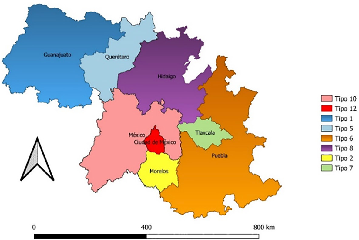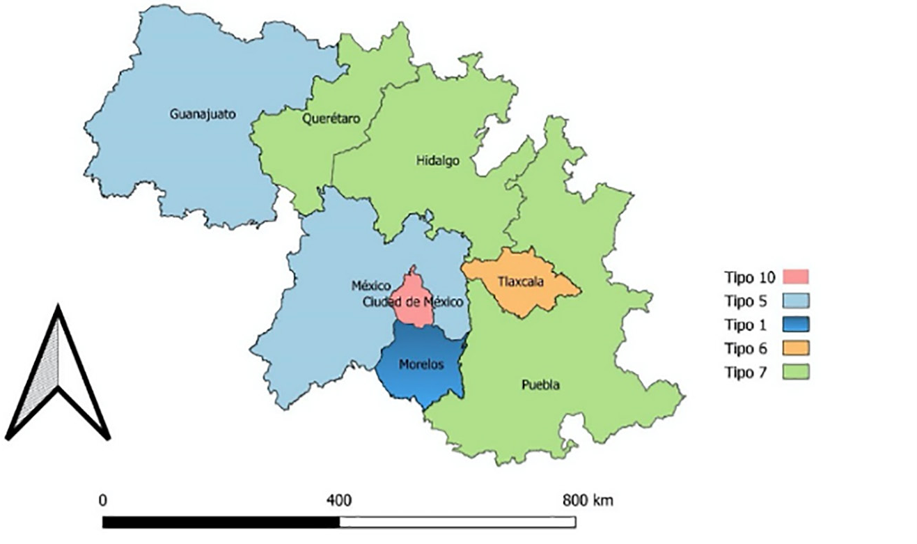 En suma, en este primer periodo sólo la Ciudad de México se considera “perdedora”. Los demás estados se consideran “ganadores” y el orden de importancia de acuerdo con su tipología se aprecia en el Mapa 1.