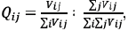 donde Vij es el valor de V (variable de estudio) correspondiente al sector "i" de la región "j"; Σi Vij denota el valor de V correspondiente al total regional; Σj Vij es el valor de V correspondiente al total sectorial, y Σi Σ jVij corresponde al valor de V a nivel nacional (Boisier, 1980; Blair, 1995).