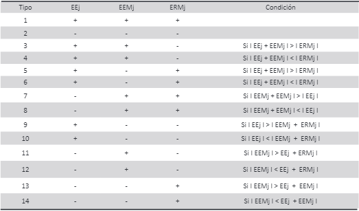 A partir de los valores de EEj se tienen tres posibles casos: a) EEj > 0 indica que la estructura del empleo o producción regional es más favorable para el crecimiento que la estructura nacional; b) EEj = 0 implica que la estructura del empleo o producción regional es igual a la estructura del empleo nacional, y c) EEj < 0 sugiere que la estructura del empleo o producción regional es menos favorable para el crecimiento que la estructura nacional.