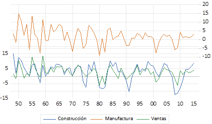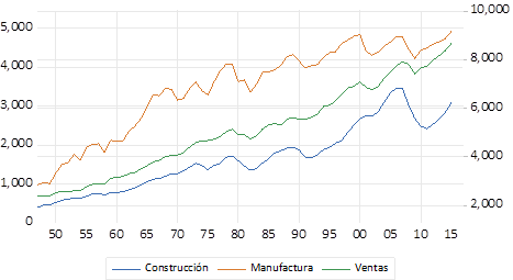 Respecto a las series de empleo, no encontramos evidencia de la existencia de un ciclo común con la serie de inmigración, lo cual sugiere que los movimientos cíclicos de los flujos migratorios no coinciden con la dinámica del mercado laboral en las industrias que aquí analizamos.