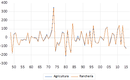 A partir de las observaciones de esta gráfica podríamos sospechar que el desempeño económico de Estados Unidos influye sobre los flujos de migración ilegal. Esta posibilidad será probada en el ejercicio econométrico que realizamos a continuación.