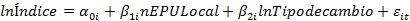 Para estimar el impacto del índice de incertidumbre de política económica y el tipo de cambio en el comportamiento del índice se considera la siguiente especificación del modelo: