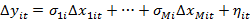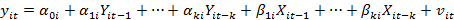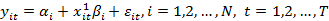 es la variable dependiente, i es la dimensión de la sección transversal para cada una de las muestras, t es la dimensión de la serie temporal de los datos,