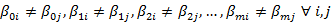 para todo i, frente a la hipótesis alternativa de que para todo i. Por tanto, mientras que bajo la hipótesis alternativa la primera asume un valor común para