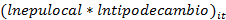es el término de interacción entre el índice de incertidumbre de política económica local y el tipo de cambio en términos logarítmicos,