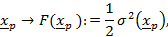 Donde F es la función objetivo definida como la mitad de la desviación estándar elevada al cuadrado. Cada valor de una n-tupla de pesos de un portafolio,