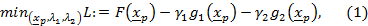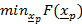 tal que cumple con ser el mínimo de todos los valores de la función objetivo F y además con las restricciones que