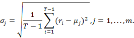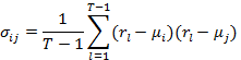 es un índice de suma que recorre todos los T-1 datos históricos, y los índices i y j se refieren a los activos en cuestión.