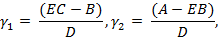 Esta solución se puede ver de forma inmediata si usamos la fórmula de Kramer y si, además, para que exista dicha solución pedimos que el discriminante
