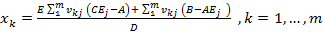 , sustituimos en (5) o en su forma desarrollada para obtener la solución para los porcentajes de un portafolio eficiente: