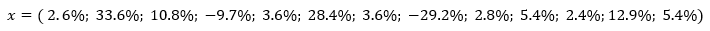 es el que contiene los porcentajes (que serán parte principal de la solución del problema de optimización junto con los multiplicadores de Lagrange
