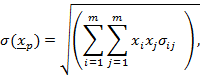 Obsérvese que i es un índice que recorre todos los posibles activos, xi son los porcentajes asignados a cada uno de los m activos,